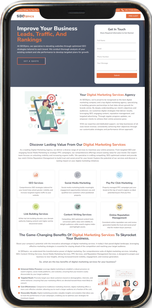 SEOepics drives online business growth through SEO, PPC ads, content creation, online reputation monitoring, and inbound link building. We enhance your digital presence, attract targeted traffic, and assist you in connecting with customers to achieve your growth objectives.