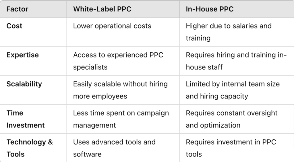 Verdict: White-Label PPC is the more cost-effective option, as it eliminates hiring and operational expenses.
